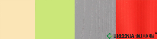 2、純色種類:主要印刷有紅、橙、黃、綠、青、藍、黑、白、灰等色係,還會對照標準色卡調製一些當下流行的顏色,純色類的顏色款式調製相對容易,開發成本更低;免漆板中科技木飾麵沒有純色類;